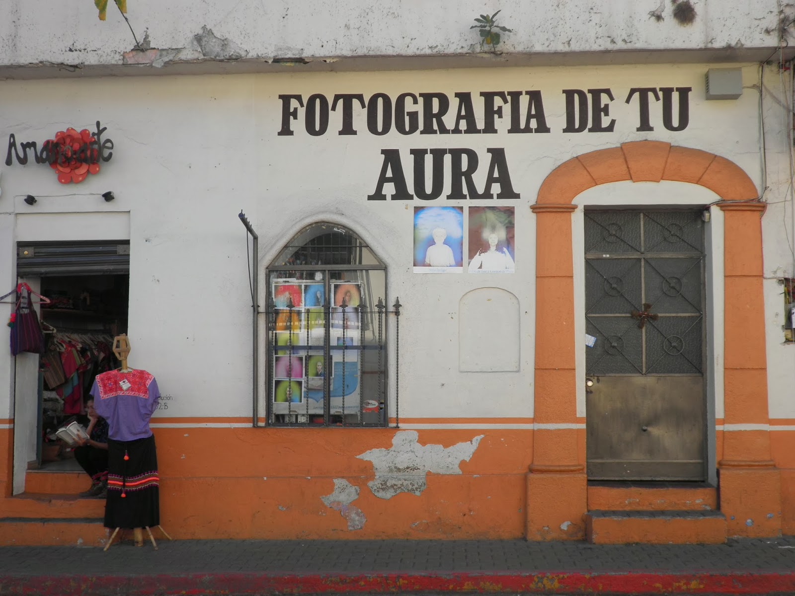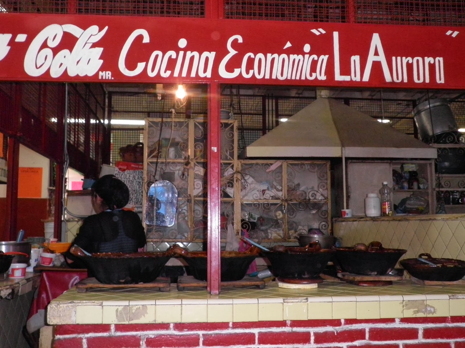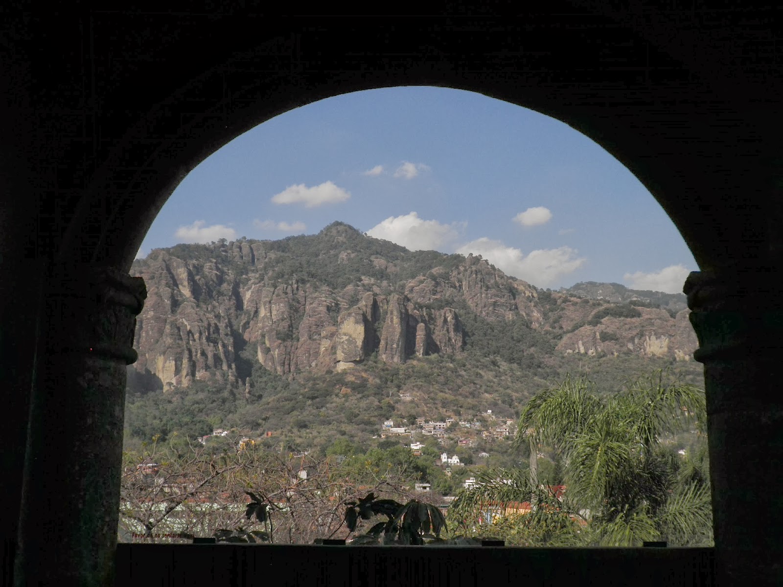 Giusto per non rimanere indietro, anche dei caldi churros con dell’ottimo Champurrado, preparato di mais con cioccolata e vaniglia (una versione più ricca del semplice atole). Ringraziamo calorosamente la cara Norma e dopo un’ora di metro bus e metropolitana raggiungiamo la Terminal Tasquena nella periferia meridionale del DF. Città del Messico è talmente grande ed estesa che per attraversarla da nord a sud in trasporti pubblici, è necessario, quando va bene, almeno un’ora. Alle 11.00 saliamo su un bus di prima classe della OCC che ci porta fino alle porte del PUEBLO MAGICO di Tepotzlan. Con un collettivo, entriamo in paese e per nostra fortuna oggi, mercoledì, è anche giorno di mercato e lo zocalo e le vie circostanti sono invase dai venditori ambulanti. Senza fretta, depositiamo i nostri zaini a lato di uno dei tanti comedor del mercato e iniziamo la scoperta di Tepotzlan con due splendidi piatti di mole pueblano. Durante il pranzo scambiamo due chiacchiere con la signora del comedor, e chiediamo se conosce qualcuno che può affittarci una stanza per un paio di notti. Ci invita a visitare l’Hospedaje familiar de Gema, situato in calle Prisciliano Rodriguez n°6. Evitiamo di sbirciare nella guida e ci dirigiamo direttamente da Gema, che ci accoglie a braccia aperte con la sua modesta ma accogliente casa. Ci sistemiamo in una doppia con bagno di buona qualità al prezzo di 400M$ e approfittiamo subito della terrazza per ammirare le falesie che circondano Tepotzlan. Lasciamo la nostra camera per uscire a dare un’occhiata al pueblo e ci perdiamo nell’affollatissimo mercato del mercoledì. Il mercato si svolge tutti i giorni a Tepoz, ma il mercoledì e la domenica arrivano anche tutti gli abitanti dei villaggi limitrofi e le dimensioni del mercato aumentano fino a raddoppiare. Compriamo un po’ di frutta per la merenda e poi ci dirigiamo verso l’ex Convento Domenicano della Natività. Per entrare nel convento si oltrepassa un portale realizzato a mosaico con vari sementi ed è stato da poco restaurato in onore del decimo anniversario del portale. Visitiamo l’interno, che in questi giorni ospita una mostra di opere realizzate in terracotta e saliamo fino alle terrazze da cui si gode di una splendida vista sulle falesie. In alto, di fronte a noi la minuscola piramide di Tepotzeco, che da qui sembra quasi irraggiungibile. Domani la visiteremo con una lunga scalata fino alla vetta della montagna. Ma torniamo al convento. L’edificio, in classico stile coloniale, è caratterizzato da dipinti che raffigurano simboli dei nativi, nonché lodi al sole alla luna e ad angeli con la vergine Maria. Rientriamo verso il mercato e ci fermiamo per un caffé in uno dei tanti bar che circondano lo zocalo. Cena a base di enchilladas in una bancarella allestita a lato della piazza centrale. Per annaffiare le delizie messicane, solita birra fresca nazionale e poi passeggiata notturna tra le vie di Tepotzlan. Ora che ci siamo capisco perché il villaggio è stato inserito tra la lista dei PUEBLOS MAGICOS. L’atmosfera che si respira qui è molto tranquilla, pensate che sembra sia un luogo con centinaia di avvistamenti UFO. Beh chissà se ne vedremo uno anche noi.!!!!!
