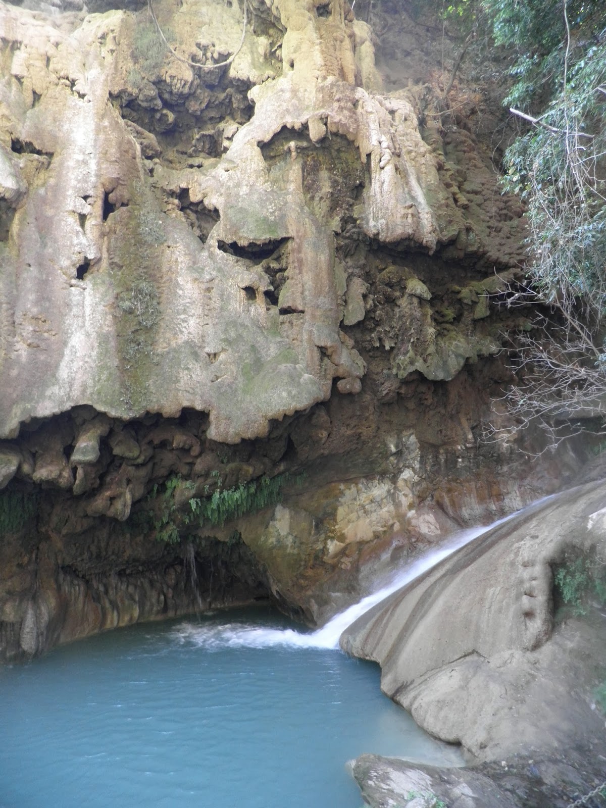 Taxco si è rilevata una bellissima cittadina, ma passare un altro giorno intero in centro ci sembrava un po’ eccessivo. Grazie alle informazioni offerte da Mache la scorsa notte, andiamo alla scoperta di alcune comunità nei dintorni della cittadina. Proprio di fronte al terminal Estrella De Oro, saliamo su un collettivo diretto a Ixcateopan, che ci scende, dopo circa 40 minuti, alla comunità Las Cascadas. Il nome dice tutto naturalmente, e un paio di cascate conosciute con il nome di Velo de Esposa e Cola de Caballo, caratterizzano il territorio della zona. Un simpatico bambino ci accompagna per qualche pesos fino al mirador, dove è possibile godere di una fantastica vista sulla vallata circostante, nonché sulla cascata superiore. Una piccola chiesa, sulla collina, ci offre un po’ di riposo, prima di rimetterci in cammino verso la strada principale. Lungo il percorso, ci fermiamo a casa di Beto un simpatico campesino che non smette mai di parlare; ed essendo produttore di caffé, ci offre due calde tazze di buon prodotto locale. Ci sdraiamo sulle amache dell’abitazione, se così si può chiamare e intraprendiamo una lunga discussione sull’agricoltura e la coltivazione del caffé. Salutiamo Beto e figlie e scendiamo fino alla strada principale. Un paio di Enchilladas come seconda colazione e ancora una sostenuta conversazione con un altro campesino, che ci chiede fondamentalmente come concimiamo i pomodori in Italia. La discussione andrebbe avanti per ore, se non fosse per il combi che sta per arrivare. Salutiamo tutti e saliamo sul Nissan che ci porta fino ad Atzala. La strada è in pessime condizioni e dalla collina si scende fino ad una valle dove è ben adagiato il piccolo villaggio. La comunità sembra deserta, ma un altro bimbo si affianca e ci dice subito di essere la nostra guida. Noi non poniamo resistenza e ci facciamo accompagnare fino alle Pozas Azules. Questo posto è frequentato soprattutto dai messicani durante i fine settimana, i quali giungono per passare una giornata in compagnia e per rinfrescarsi un po’.