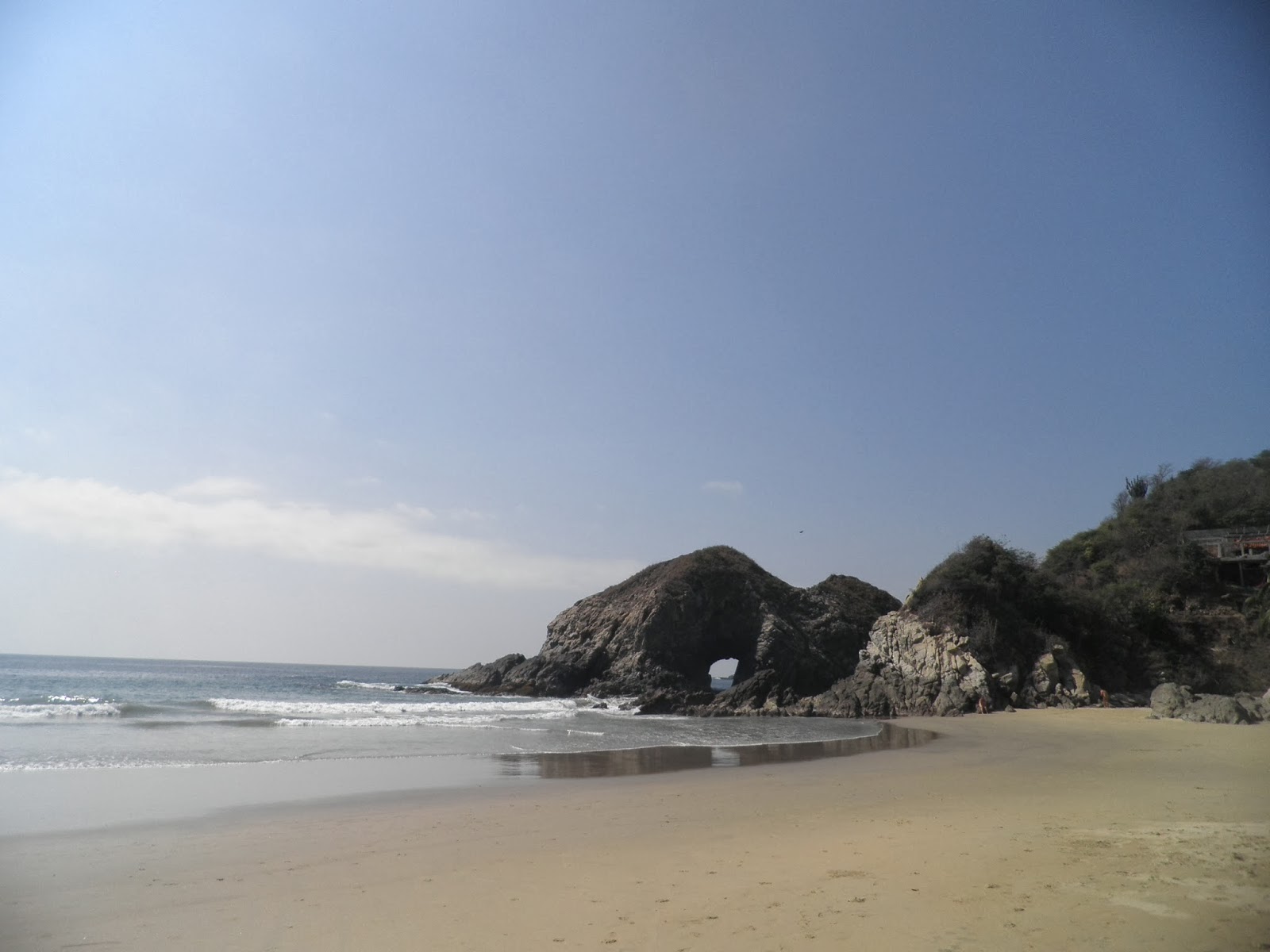 Il ritmo lento del pacifico oramai ci ha contagiato, e veniamo cullati dalle onde della baia. Oltre alle tante cose belle di Chacahua, la buona notizia è che anche qua nessuna ombra di zanzare. Esco dopo una piacevole notte in riva al mare per una lunga passeggiata sotto un cielo ambrato, causato dalla magnifica alba. Passeggio in direzione sud-est, e dopo essermi allontanato dal villaggio per un’ora circa, mi siedo di fronte al Pacifico, contemplando le magnifiche onde e il dolce planare dei pellicani. Oggi sarà una giornata di completo relax. Rientro al Siete Mares per un’ottima colazione con Elisa e poi ci spostiamo di qualche metro sulla spiaggia.