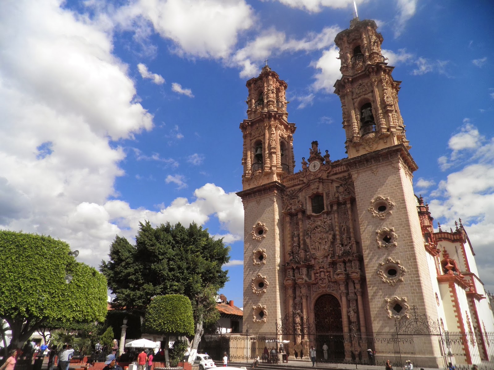 Oggi non c’è nessuno, a parte un piccolo gruppo di adolescenti provenienti da Cuernavaca, che sono in libera uscita dalla scuola. Faccio un bagno rinfrescante (l’acqua è decisamente fredda) mentre Elisa mi guarda con occhi stupiti. Da queste parti il sole riscalda le acque del rio solo da Aprile a Settembre, vista la posizione della montagna e durante l’inverno, le acque sono piuttosto gelide. Lasciamo le Pozas per dare un’occhiata alla piccola comunità di Atzala, con la chiesetta nel bel mezzo della piazzetta principale. L’intera comunità conta 900 abitanti e almeno i bambini crediamo di averli conosciuti tutti quanti. Cerchiamo invano qualcosa da mangiare; chiediamo anche a casa di qualcuno, che però non può offrirci niente, quindi decidiamo di risalire su un combi che ci riporterà fino a Taxco. Aspettiamo nei pressi di una drogheria il passaggio della camionetta per più di un’ora e raggiungiamo Taxco nel primo pomeriggio. Ci facciamo lasciare all’incrocio del Cristo, dove saliamo nell’ennesimo collettivo fino alla sommità della collina. Da queste parti si ha una vista a 360° su Taxco e sull’intera vallata. Dal cristo, con una camminata, lungo le scale e le vie acciottolate della città, raggiungiamo nuovamente il centro. E finalmente ci sediamo per mangiare qualcosa; sono le 4 del pomeriggio e pranziamo con Chile Relleno. Rientrando verso casa, ci imbattiamo in uno spettacolo di balli tipici, in onore del dio Quetzalcóatl. Ci sediamo in una panchina della Plaza de la Veracruz, e ammiriamo per un’ora circa le evoluzioni dei ballerini. Rientriamo a casa contemporaneamente a Mache, che ci offre subito il solito Metzcal e ce ne andiamo a cena con alcuni compagni di lavoro delle nostre due nuove amiche messicane. Ceniamo con delle ottime quesadillas in un ristorante del centro di Taxco, con vista cattedrale, poi rientriamo a casa a notte inoltrata, felici di aver visitato questa bella cittadina e di aver conosciuto due simpatiche ragazze come Ani e Mache.