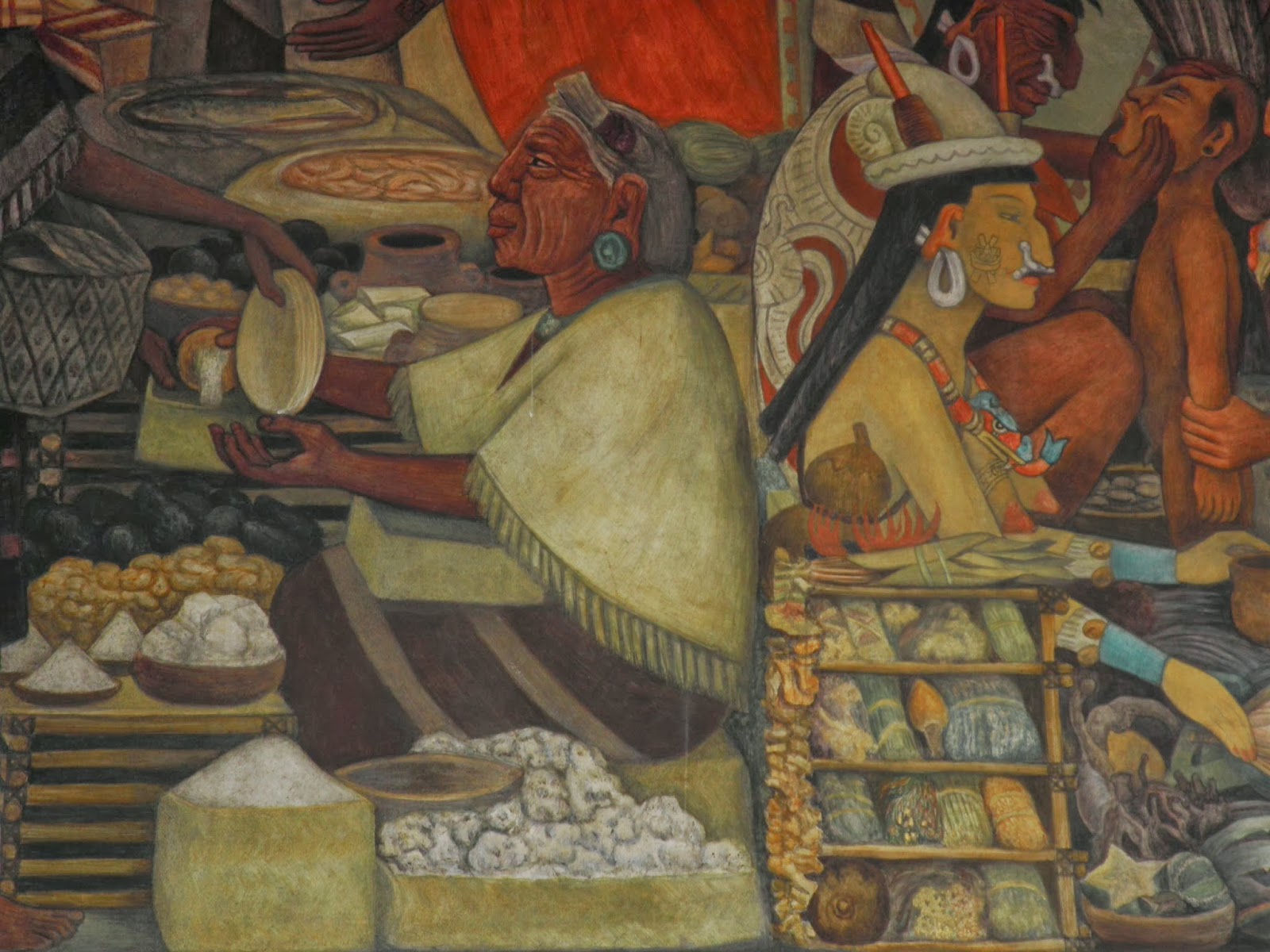 La giornata di oggi sarà dedicata ad alcuni obiettivi tanto attesi della città. Al mattino presto, saliamo sul metro bus a Tenayuca, raggiungiamo la stazione di Etiopia e poi con la metro scendiamo fino al quartiere meridionale di Coyoacan. La zona è un quartiere residenziale dal bell’aspetto, verde e che non ha molto da spartire con i più modesti quartieri cittadini. Coyoacan è stato il luogo di nascita della famosa artista Frida Kahlo, e proprio nella casa in cui è vissuta è stato allestito un bellissimo museo in suo onore, nonché in onore del suo amato e odiato compagno Diego Rivera. La famosa casa Azul situata all’angolo tra Av. Londres e Av Allende ti accoglie con le sue facciate color blu cobalto e ti invita ad entrare ad esplorare una delle più famose case di tutta città del Messico. In questa casa, puoi ripercorrere l’intera vita travagliata dell’artista nonché quella che fu il luogo di incontro di famosi artisti e politici d’eccezione del calibro di Trotskij. Dipinti, autoritratti, fotografie, gioielli, abiti e una collezione dei busti della Kahlo, ti accompagnano lungo tutto il percorso del museo, con una visita finale dell’immenso e verde giardino esterno. La visita comunque non tarda più di un’ora e dopo aver letto e visto tanto sull’artista messicana, finalmente sono felice di essere qua nel bel mezzo di questo monumento alla Kahlo. Raggiungiamo la metro di Coyoacan e dopo circa una mezz’ora siamo in pieno centro. Pranziamo in una Taqueria del centro e alle 14 entriamo nel Palacio Nacional. Rimaniamo subito a bocca aperta di fronte all’immenso murales del grande artista nonché compagno di Frida, Diego Rivera.