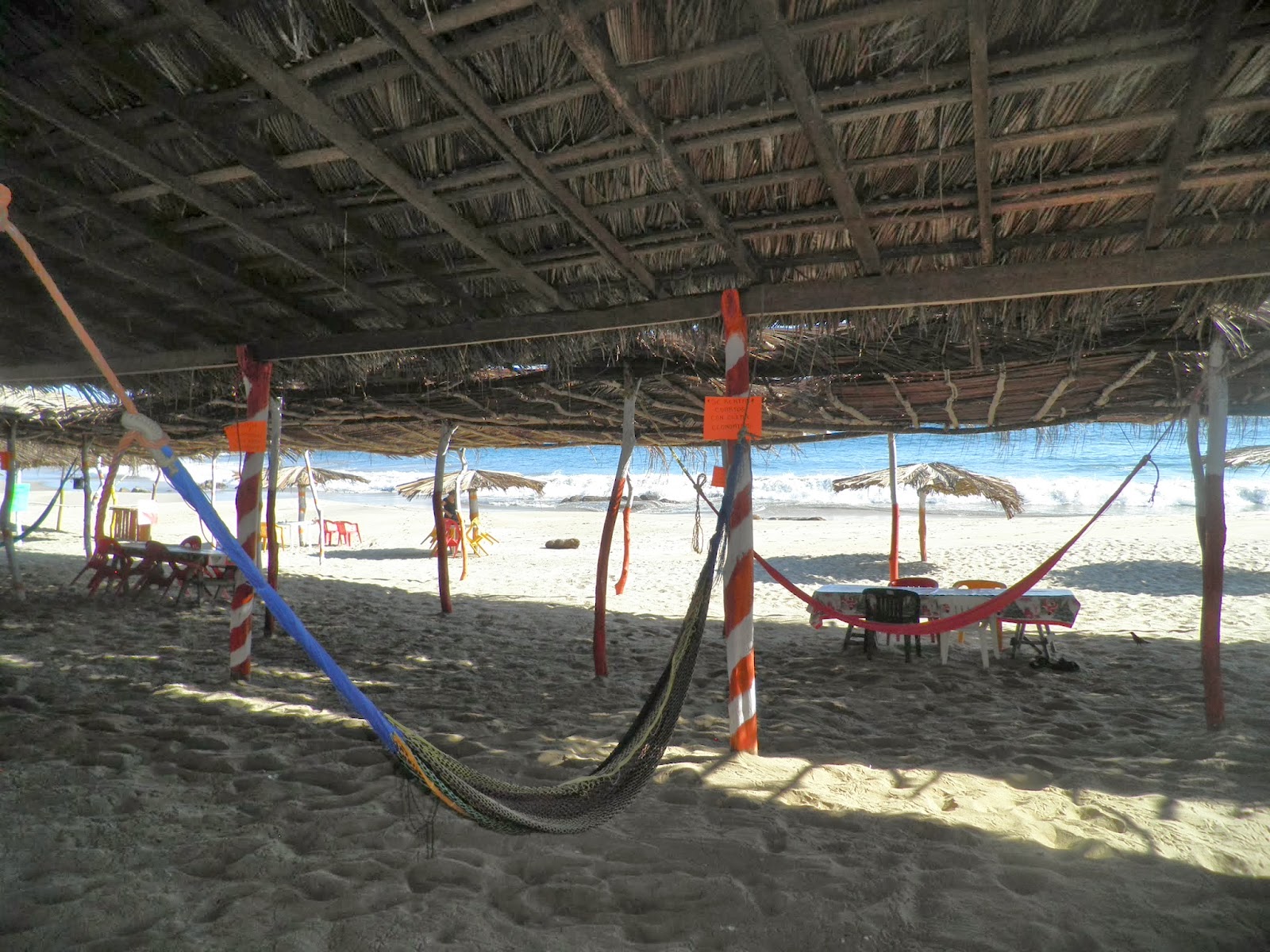 Dopo la serata di ieri, abbandoniamo l’idea di prendere l’autobus delle 06.00 per Acapulco e facciamo una buona colazione a base di frutta con le nostre care amiche. Salutiamo Ani e Mache e ci dirigiamo verso la stazione della Estrella De Oro. Saliamo sul bus delle 09.20 per Acapulco e in meno 4 ore, raggiungiamo il Pacifico. Siamo ancora del tutto indecisi sul da farsi, anche se una cosa è ben chiara: scappare da Acapulco al più presto. Ci facciamo consigliare da un paio di ragazze conosciute sul bus, ed entrambe ci confermano la nostra idea di raggiungere la costa Chica e fermarsi in una spiaggia a sud di Acapulco. L’autista, ci lascia alla periferia della caotica Acapulco e con un taxi raggiungiamo la stazione dei bus Costenos. Fortunatamente il bus diretto a Puerto Escondido parte quasi subito, e alle 13.15 lasciamo la periferia di Acapulco per raggiungere Copala, punto di partenza per le spiagge della costa Chica. In due ore e mezza raggiungiamo l’incrocio per Playa Ventura, dove attendiamo, in compagnia di una signora messicana, un mezzo di fortuna per arrivare alla spiaggia. Saliamo su un Pick-up di passaggio, e in pochi minuti scendiamo di fronte all’hotel Dona Celsa. Senza girare troppo, prendiamo una stanza nel coloratissimo hotel della signora Celsa, con terrazza vista mare. Finalmente siamo al Pacifico, spiaggia e tante amache appese alle palapas lungo mare. Per 250M$ siamo veramente contenti della scelta e ci istalliamo sulla desolata spiaggia di Ventura. Approfittiamo subito di una bellissima passeggiata lungo mare, degustiamo un’ottima birra al tramonto e ceniamo al ristorante con un ottimo Robalo alla Talla. Che la costa Chica fosse molto meno turistica della sua sorella a nord di Acapulco, lo sapevamo, ma non pensavamo assolutamente di essere gli unici visitatori del momento. Parlando con le ragazze che lavorano all’hotel, veniamo a conoscenza che durante le vacanze natalizie la spiaggia e la zona erano invase dai messicani e anche da molti nordamericani, i quali raggiungono Playa Ventura per scappare al freddo del nord. Nei tre giorni di playa Ventura incontreremo solo due canadesi che da 15 anni vengono a passare due mesi da queste parti e altri due simpatici personaggi.