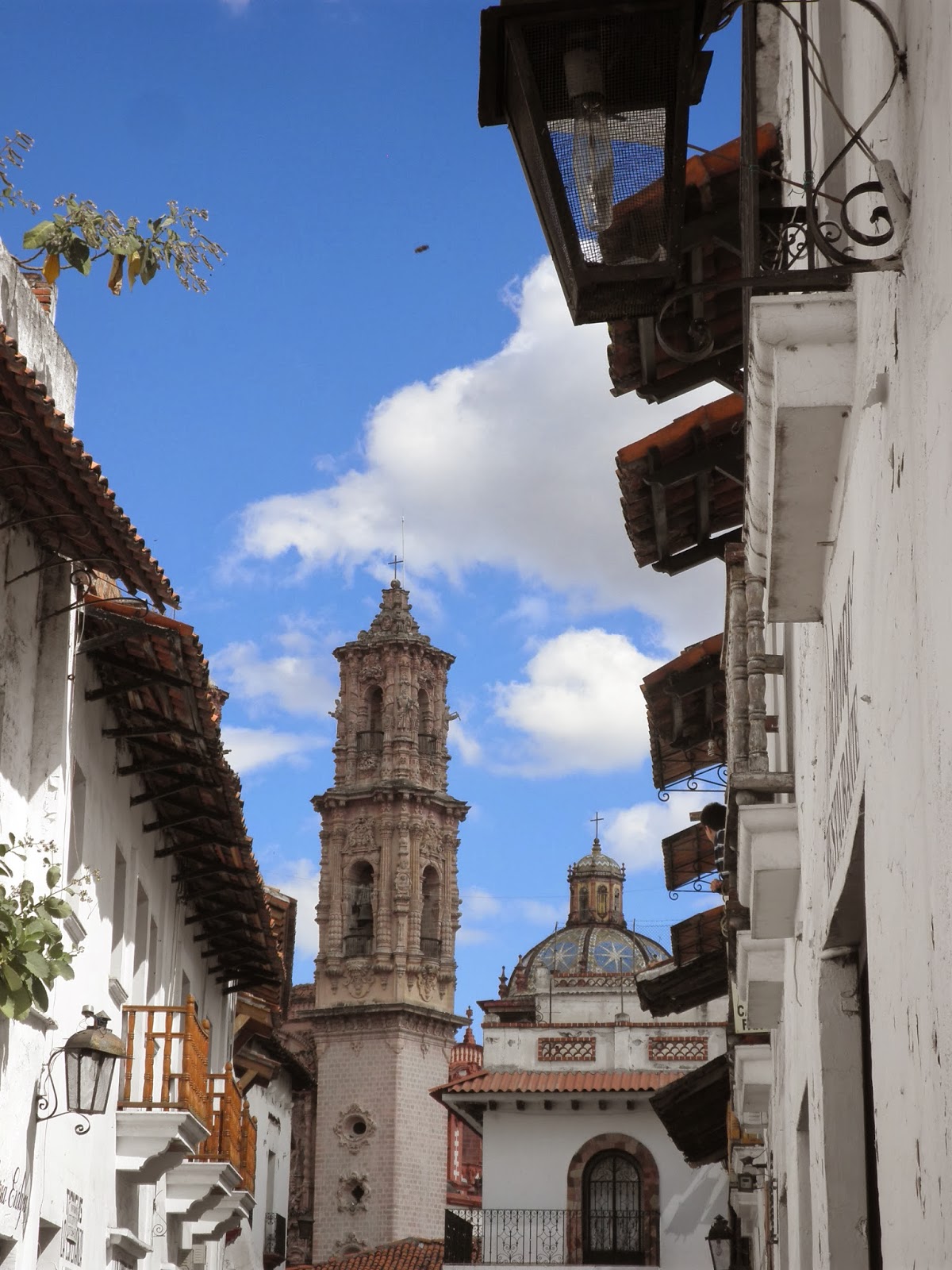 La sveglia biologica oramai non sbaglia da alcuni giorni, e alle prime luci del giorno sono già in terrazza per ammirare una bellissima alba tra le montagne di Tepoz. Facciamo colazione con ananas e champurrado e saliamo sul bus della compagnia Ometochtl che ci porterà direttamente nella capitale dello stato di Morelos: Cuernavaca. In meno di un’ora l’autista ci lascia nei pressi dell’autostazione e compriamo il biglietto per Taxco. Abbiamo solo 45 minuti di tempo per dare un’occhiata ai dintorni e ne approfittiamo per scambiare due chiacchiere con una venditrice di budini e creme caramel. Saliamo sul bus della Costa Line Aers alle 10 del mattino e in poco più di un’ora raggiungiamo il Pueblo Magico di Taxco, conosciuto per le sue miniere aurifere. Raggiungiamo a piedi lo zocalo inerpicandoci tra le viuzze di Taxco, e dopo un paio di incomprensioni con Maria Jose (la messicana che ci ospiterà x i prossimi due giorni) saliamo su un taxi per raggiungere i Bungalow De Bermeja. Ad aprirci la porta dell’abitazione c’è Ani, la compagna di appartamento nonché di lavoro di Maria Josè e ci sentiamo subito a casa nostra, grazie alla solita cordialità messicana. Lasciamo i nostri zaini in camera e iniziamo ad esplorare la cittadina di Taxco. Senza una meta ben precisa, ci perdiamo tra le piccole vie acciottolate di Taxco, tra sali e scendi continui. Impossibile non accorgersi dei numerosi taxi Volkswagen che si aggirano nel Pueblo, soprattutto per il rumore e il continuo suonare dei clacson. Salendo sempre più verso la collina, raggiungiamo la chiesa della Vergine di Guadalupe, da dove si gode di una vista mozzafiato sull’intera Taxco. Nel bel mezzo di tutto la maestosa cattedrale de Santa Prisca. Prendendo una delle tante strade in discesa, rientriamo allo zocalo, dove mangiamo dell’ottima frutta fresca. Entriamo per una breve visita nella Casa Borda, dove per l’occasione è stata allestita una mostra di opere realizzate in argento. A pochi passi, la cattedrale, simbolo di Taxco, che svetta trionfante nel lato sud-orientale della piazza. Da qui si raggiunge molto facilmente il grande mercato cittadino, un labirinto costruito ad opera d’arte, dove ci perdiamo per l’ennesima volta tra i tanti ambulanti. Alcune compere nel Mercato de las Artisanias e poi rientriamo in casa subito dopo il tramonto. Ne approfitto della presenza di una chitarra per suonare due canzoni nella terrazza dell’appartamento, in attesa di conoscere di persona Maria Josè, che ancora sta lavorando. Passiamo la serata in terrazza tra un bicchiere e l’altro di Metzcal mentre Mache (soprannome di Maria Josè) ci propone di uscire per andare ad assaporare quelli che per lei sono i migliori tacos di tutta Taxco. Lungo Av. de Los Plateros, una piccola taqueria con terrazze sulla via principale, ci attende per la nostra cena, mentre con Mache intraprendiamo una lunga discussione sulla storia del Messico. Ce ne andiamo a dormire molto tardi non prima però di essere venuti a conoscenza di alcuni villaggi della zona che Mache ci ha consigliato vivamente di visitare. Domani faremo una gita fuori porta, tra i villaggi meno conosciuti della comunità di Cacalotenango, dove la nostra nuova amica è solita lavorare.