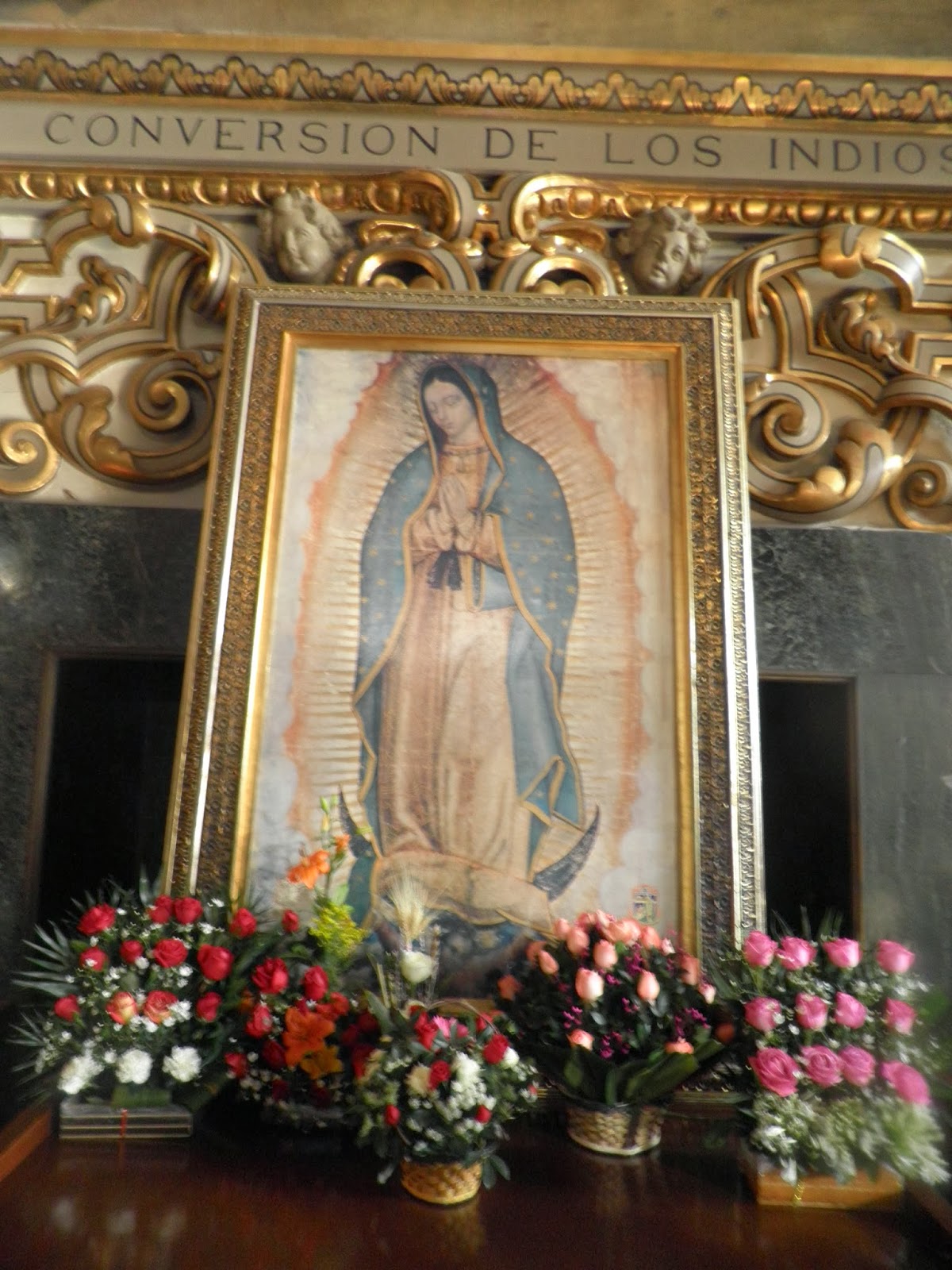 Il terminal dei bus 1^ classe di Oaxaca è situato a pochi passi dall’Hostal, e alle 05.30 del mattino ci incamminiamo per raggiungerlo. Partiamo in perfetto orario e passiamo le prime due ore del viaggio a dormire. Al mio risveglio, lo spettacolo che offre la sierra Madre del Nord è affascinante. Lo scenario è caratterizzato da fitte foreste di cactus di elevata altezza ed io rimango incollato al finestrino per un paio d’ore lungo la statale 150. Oltrepassando la Sierra, scendiamo verso le valli centrali di Puebla, capitale dell’omonimo stato. I maestosi Popocatepetl e Iztaccihuatl, con le loro vette innevate, ci accompagnano nell’ultima parte del viaggio. Mentre il secondo è oramai un vulcano spento, il Popo, come viene chiamato dai Messicani, è ancora attivissimo, e lo conferma la ininterrotta nuvola di fumo che scappa dal suo cratere. Alle 12.30 raggiungiamo la TAPO, dove ci incontriamo con la carissima Norma. Abbiamo ancora un pomeriggio a disposizione e i nostri amici ci faranno un’ultima sorpresa. Prendiamo il metro bus in direzione nord e all’uscita ci attende Omar con il suo taxi non ufficiale. Si scusa di non essere potuto venire a prenderci al terminal, ma ci spiega che i taxi ufficiali si sarebbero sicuramente arrabbiati con lui. Saliamo sulla piccola Opel Corsa e dopo qualche km attraverso il traffico del Monstruo, ci fermiamo per un pranzo in una taqueria. All’interno, un simpatico Mariachi allieta la nostra ora del pranzo. Naturalmente io ed Elisa non abbiamo la minima idea di dove ci troviamo, anzi, anche Norma sta cercando di capire, grazie ad alcune informazioni di Omar, in quale zona ci troviamo. Durante i giorni passati nella capitale, ci rendiamo conto di quanto sia grande, e che anche gli abitanti spesso non possono conoscere tutte le strade. Dopo aver terminato il pranzo, Norma ci comunica che siamo vicino a Tepito, e che vista l’ora, abbiamo tempo per visitare l’altare di Alfareria 12, dove si trova la Santa Muerte. Non che avessi abbandonato l’idea di visitarla, ma dopo tutto quello che aveva detto Norma di spiacevole nei confronti della Santa, non mi aspettavo che ci proponesse di andarci. Io prendo subito la palla al balzo e salgo in macchina. La prima cosa che ci dicono è di nascondere gli zaini sotto i seggiolini e abbassare le chiusure di sicurezza dell’auto: stiamo raggiungendo una zona che anche ad un chilangos non piace molto; o per lo meno a Norma e compagno. La nostra amica scende circa 1km prima, non ha assolutamente intenzione di entrare nel BARRIO BRAVO (Tepito) né tantomeno andare a far visita alla Muerte. Con Omar ed Elisa, ci addentriamo nel barrio di Tepito e dopo qualche indicazione da parte di cortesi messicani, raggiungiamo l’altare della Santa Muerte. Ho il cuore che mi batte a 3000 e sono anche l’unico componente del gruppo a scendere di macchina. Scatto un paio di foto all’altare e alla stanza dei ceri, mentre una coppia di innamorati sta pregando davanti alla Flaquita. La mia curiosità mi spinge ancora oltre e provo ad affacciarmi nella piccola porta che da sul cortile adiacente all’altare. Riconosco Dona Queta, la custode della Nina Blanca (altro nome con cui viene chiamata la santa) e vengo accolto subito come un figlio. Quando comunico ad Enriqueta il mio interesse per la Santa, e soprattutto quando mostro il libro di Fabrizio Lorusso che mi ha accompagnato per tutto il viaggio, vengo sommerso di rosari, preghiere scritte a mano, calendari della Santa e tutta una serie di ninnoli per pregare la Santa. Scatto una foto con Enriqueta, in ricordo di questo emozionante momento, mentre timidamente si è avvicinata anche Elisa. Salutiamo Dona Queta e il suo altare di Alfareria 12 e raggiungiamo Norma. Adesso, in contrapposizione con la Muerte, ci aspetta la visita alla Virgen De Guadalupe. Percorriamo da prima Calzada De los Misterios, poi Calzada De Guadalupe, entrambe prese d’assalto dai fedeli, il giorno 12 dicembre di ogni anno, e raggiungiamo Plaza De Las Americas. Naturalmente, la vecchia chiesa dedicata alla vergine è inclinata come la maggior parte dei vecchi edifici della capitale, mentre la nuova basilica, costruita dall’architetto Ramiro Vazquez, è in grado di ospitare più di 40.000 fedeli. Sembra che durante la realizzazione si siano accorti che le dimensioni avrebbero superato anche la basilica di San Pietro in Vaticano. Per questo, una revisione del progetto in corso ha ridimensionato la nuova basilica. Saliamo le scale che portano al Cerro de Tepeyac, dove si narra che il contadino Juan Diego ebbe le sue visioni della Virgen. Dalla sommità, dov’è situata la Capilla del Cerrito, abbiamo goduto della nostra ultima vista sul maestoso Monstruo. La torre Latinoamerica in lontananza, chiude il cerchio di questo magnifico viaggio messicano, e con Elisa, seduti di fronte a questo spettacolo, ci promettiamo di non far trascorrere molti anni ancora per tornare da queste parti!!!