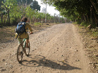 Stamani ci svegliamo di buon’ora anche se non è sufficiente per salire nell’unico bus della giornata che porta a San Ramon. Oggi è domenica e ci sono pochissimi mezzi di trasporto, l’ultimo che rientra parte alle 13.40 dalla stazione biologica di San Ramon e se andiamo con l’autostop, rischiamo di non arrivare in tempo o comunque di rientrare a Balgue a notte fonda. Decidiamo di optare per due bici (180C$) anche perché dopo circa un’ora non è passato ancora nessuno. Dopo un’ora e mezzo circa, e alcune soste durante il tragitto, raggiungiamo la Estacion Biologica de San Ramon. Paghiamo 120C$ per l’entrata (il boss è un ministro che aveva relazioni con Somoza) e incominciamo la salita verso la cascata. Dicono che siano 3km, ma credo che per raggiungere le cascate siano almeno 5 anche perché mi sembra strano che ci vogliano 2 ore per effettuare tutto il tragitto. Anche se è abbastanza stancante arrivare quassù, una volta arrivati siamo ripagati dallo spettacolo che ci offre la caduta di 40 metri sotto la quale ci rinfreschiamo. Non voglio immaginare cosa sia questa cascata nel periodo delle piogge. Dopo un po’ di relax, ci mettiamo in cammino verso valle e raggiungiamo la Estacion alle 14.30. Siamo piuttosto stanchi, dopo la pedalata, la salita e adesso di nuovo la discesa. Adesso dovremmo fare il tragitto di un paio d’ore in bici per ritornare indietro, ma per fortuna due ragazzi che accompagnano due inglesi con il loro collettivo, ci caricano le bici sul tetto e ci accompagnano a Santa Cruz; noi li ringraziamo e gli offriamo due coca-cola.