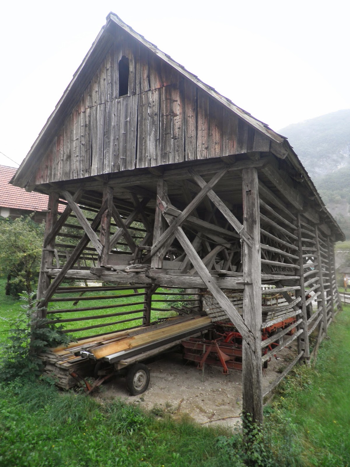 Ci svegliamo sotto la pioggia, ma non ci arrenderemo mai.. Piove molto poco, la fine pioggia scende regolarmente, ma non ci rovinerà più di tanto la giornata, almeno fino al primo pomeriggio. Dedicheremo la giornata di oggi alla zona del lago Bohinj, con le sue acque turchesi e i piccoli villaggi sparsi ai piedi del Parco Nazionale del Triglav La prima tappa è il museo dell’alpeggio, situato nel villaggio di Stara Fuzine. Una gentilissima slovena ci invita ad entrare nelle tre sale del museo, dove sono esposti oggetti occorrenti per la produzione casearia della regione alpina. Nella prima sala, c’è anche la ricostruzione di un capanno per pastori che utilizzavano durante il periodo estivo in montagna. Alcune presse per il formaggio, vasche di rame, enormi racchette da neve, foto d’epoca e alcuni bastoni da pastori costituiscono l’interessante collezione del museo. Dopo un caffè nel villaggio, raggiungiamo il piccolo insediamento di Studor, dove è situato la Casa Oplen, tipica abitazione contadina della zona, con la classica CUCINA NERA (cioè senza canna fumaria). Adesso, la Casa Oplen ospita un piccolo museo dove il visitatore può ripercorrere la storia dei contadini della zona. Per i miei genitori è un salto indietro nel tempo e mi raccontano un sacco di storie sulle loro vecchie case dove abitavano da piccoli. Lasciamo Studor e raggiungiamo Ukanc, da dove parte l’itinerario pedonale fino alle cascate della Savica. Leggermente più impegnativo questo percorso di circa 40 minuti raggiunge una gola dove le cascate si gettano con un salto di circa 60 metri. Sembra che siano le più belle del paese ma si contendono il titolo con quelle Kozjak, visitate precedentemente nei pressi di Kobadir. Io preferisco senza dubbio queste di Savica. Durante il cammino di ritorno inizia a piovere, ma sempre pronti ad ogni evenienza, apriamo l’ombrello e raggiungiamo la nostra auto. Facciamo pranzo lungo le rive del lago Bohinj e dopo il caffè raggiungiamo Ribcev Laz, dove visitiamo la Chiesa di San Giovanni Battista, che conserva dei magnifici affreschi del XV e XVI sec. Oggi sarebbe stato bello passeggiare lungo le rive del lago, ma la pioggia pomeridiana ci invita a rientrare a Bled. Per fortuna in serata si rasserena e ne approfitto per l’ennesima passeggiata fino al centro del paese.